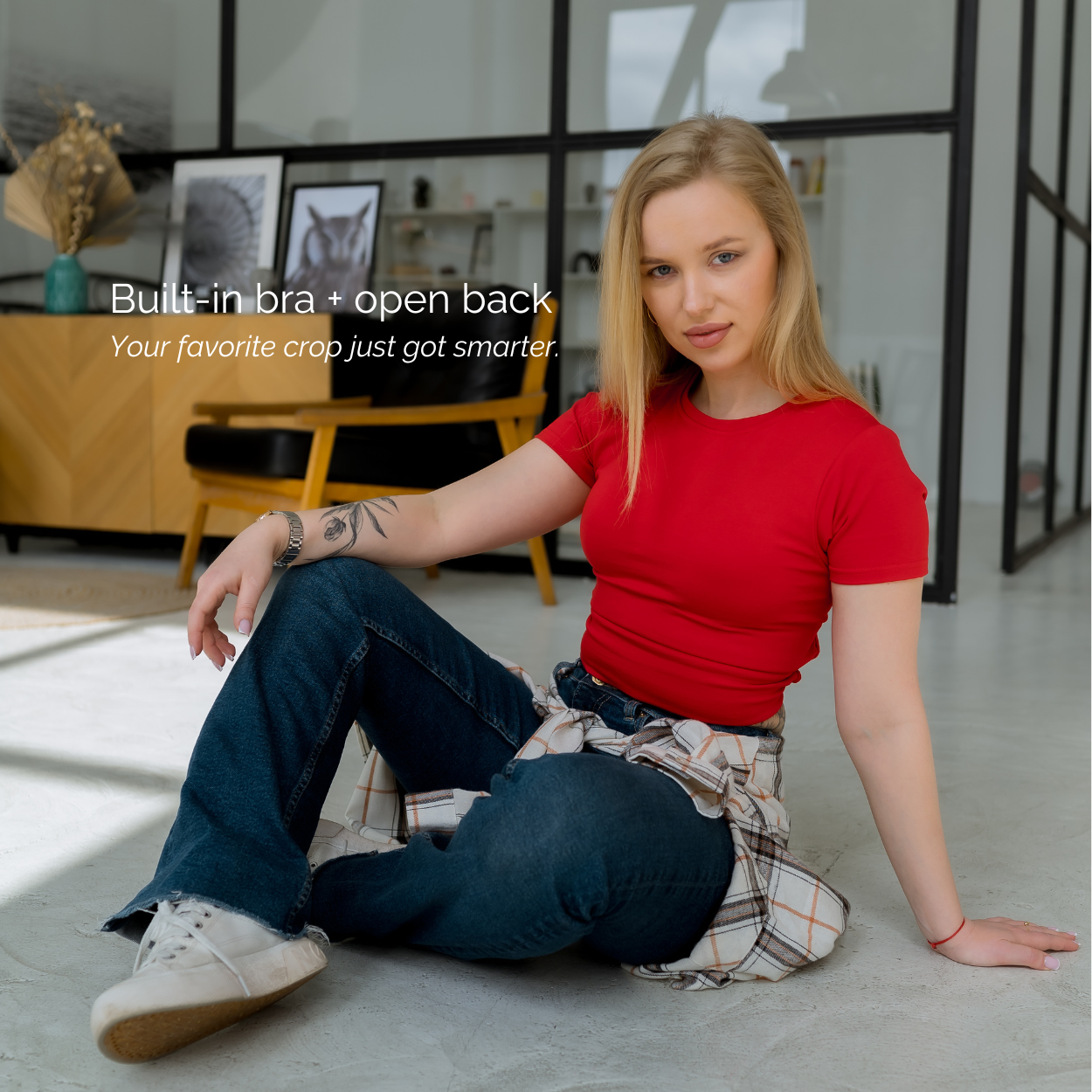 Find your flow — this grey crop top with an open back is designed for movement, comfort, and confidence.